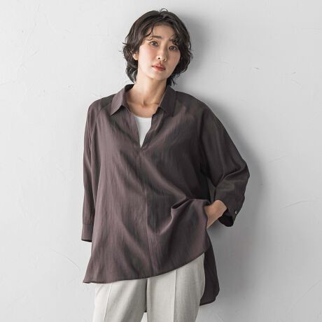 洗えるトリアセコットン素材のスキッパーブラウス。