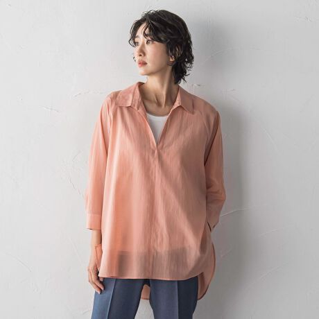 洗えるトリアセコットン素材のスキッパーブラウス。