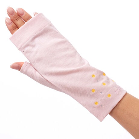 [型番:FRU2690438]紫外線対策UVカット手袋(ロゴ・花柄刺?スタッズ付デザイン)・指無しショート丈・接触冷感