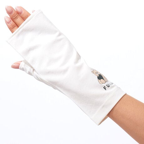 [型番:FRU2692636]紫外線対策UVカット手袋(ロゴ・ベアーモチーフプリントデザイン)・指無しショート丈