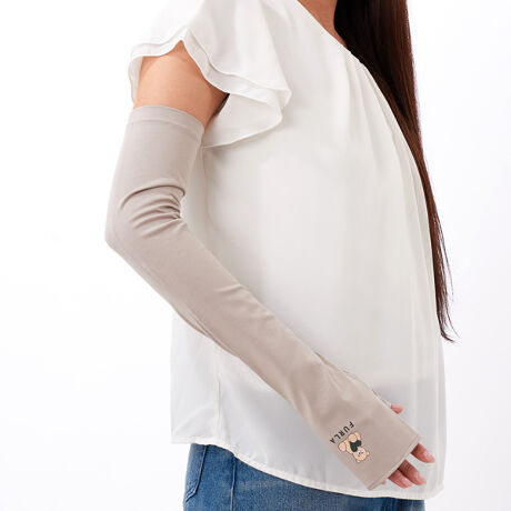 紫外線対策UVカット手袋(ロゴ・ベアーモチーフプリントデザイン)・指無しロング丈