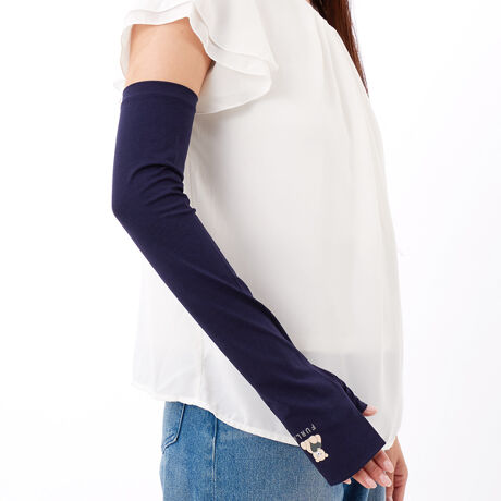 [型番:FRU2692743]紫外線対策UVカット手袋(ロゴ・ベアーモチーフプリントデザイン)・指無しロング丈