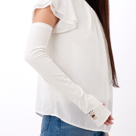 [型番:FRU2692743]紫外線対策UVカット手袋(ロゴ・ベアーモチーフプリントデザイン)・指無しロング丈