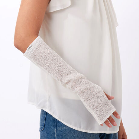 [型番:FRU2693838]紫外線対策UVカット手袋(ピスネームロゴデザイン)・指無しミドル丈