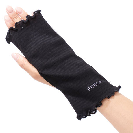[型番:FRU2694336]紫外線対策UVカット手袋(ロゴ刺?/フリルデザイン)・指無しショート丈