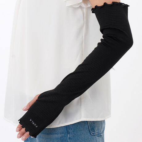 [型番:FRU2694446]紫外線対策UVカット手袋(ロゴ刺?/フリルデザイン)・指無しロング丈