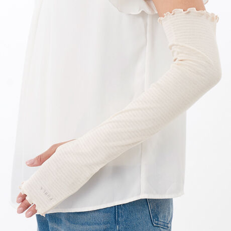 [型番:FRU2694446]紫外線対策UVカット手袋(ロゴ刺?/フリルデザイン)・指無しロング丈