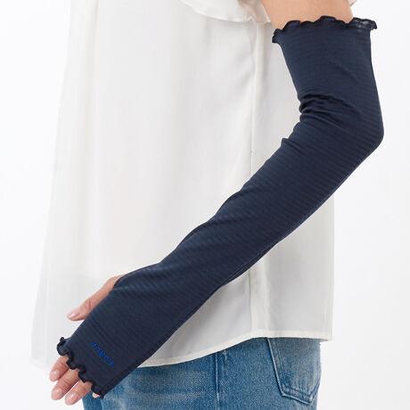 [型番:FRU2694446]紫外線対策UVカット手袋(ロゴ刺?/フリルデザイン)・指無しロング丈