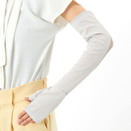 [型番:FRU2695342]紫外線対策UVカット手袋(ロゴ刺?デザイン)・指無しロング丈