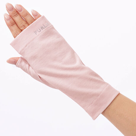 [型番:FRU2695736]紫外線対策UVカット手袋(ロゴスタッズデザイン)・指無しショート丈・接触冷感