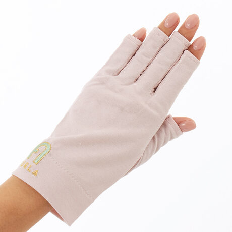 [型番:FRU2696438]紫外線対策UVカット手袋(ロゴ・アーチモチーフ刺?デザイン)・半指ショート丈