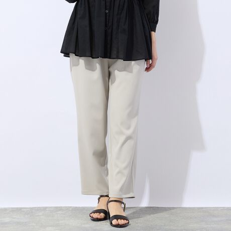 カジュアルからきれいめまでシンプルで合わせやすい。オールゴム仕立てでお腹周りもラクチン。