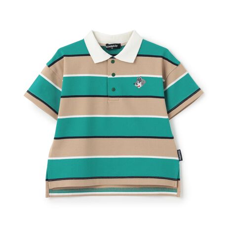 オオカミワンポイントボーダー半袖ポロシャツ