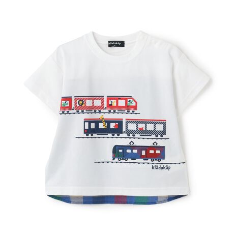 後ろ切替チェック電車アップリケ半袖Tシャツ