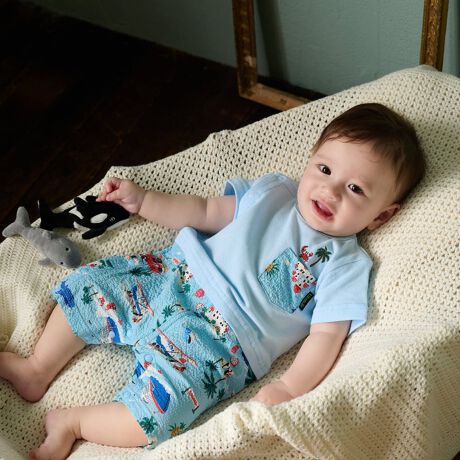 トップス部分の鹿の子素材は、涼やかな通気性と上品な質感が魅力です。