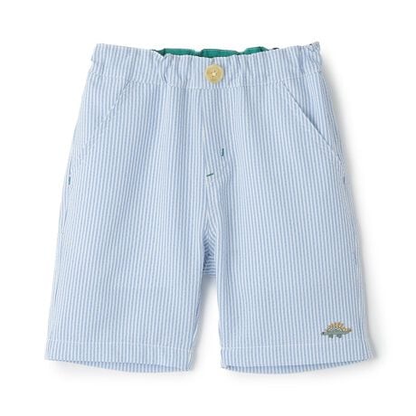 ステゴサウルスの刺しゅうや織りネームをあしらった6分丈パンツです。