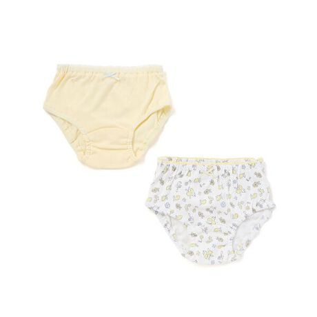 裏側にさりげなくプリントを施した無地タイプと、可憐な総柄ショーツがセットになった女の子用アイテム。