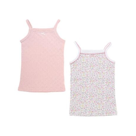 針抜きで表現したハート柄と、やさしい雰囲気の総柄キャミソールがセットになった、女の子のためのときめきインナー。