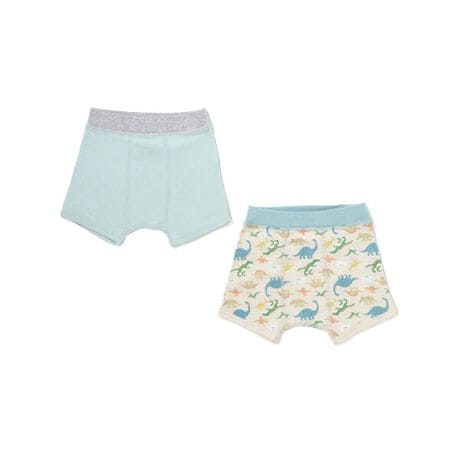 裏側にさりげなくプリントを施した無地ショーツと、楽しいモチーフが広がる総柄ショーツがセットになった、男の子の毎日に寄り添うインナーアイテム。