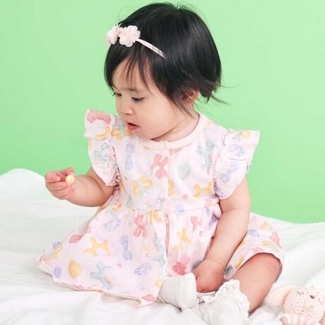 カラーごとに違った総柄プリントが楽しめる、女の子ベビー用ボディミニ。