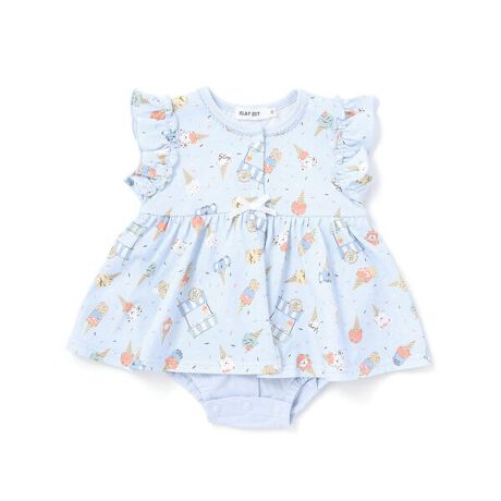 ブルー系は、一見するとソフトクリーム柄のように見えますが、よく見るとアイスの部分が動物になっている遊び心たっぷりのデザイン。