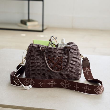 ナイロンラフィアの軽やかな風合いと、ころんとしたボストンフォルムが魅力のミニバッグ。
