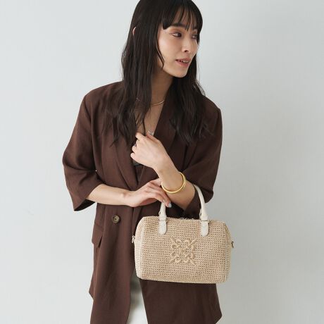 ナイロンラフィアの軽やかな風合いと、ころんとしたボストンフォルムが魅力のミニバッグ。