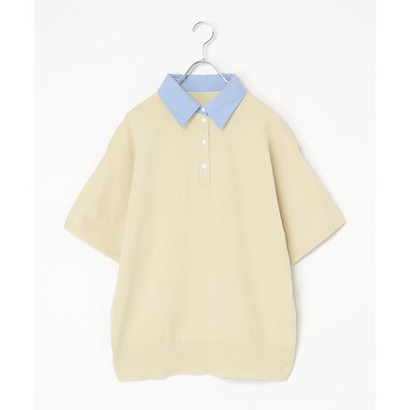 ニットソーと無地配色のシャツ襟を組み合わせたトレンドのアイテム。