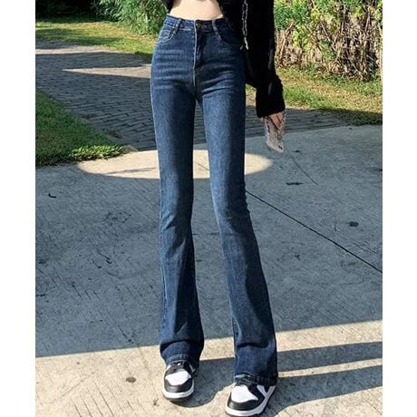 美脚シルエット ハイウエストスリムフレアデニムパンツ