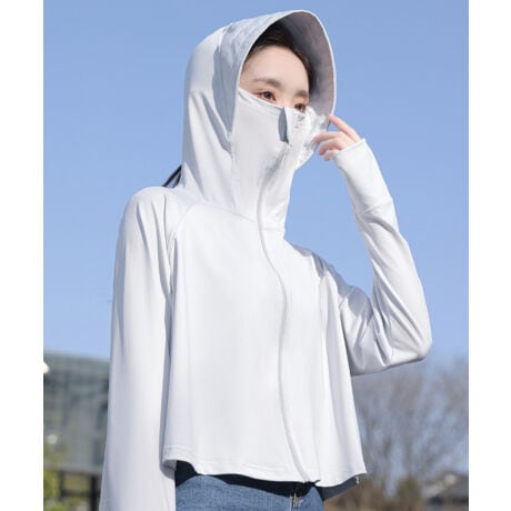 ジップを上まで閉めることで顔周りまで紫外線をガード。