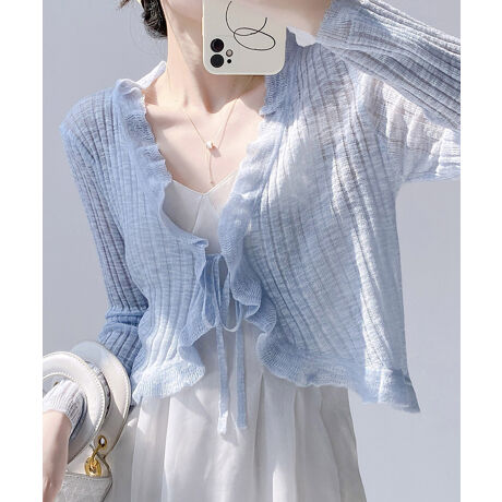 軽やかな透け感とフリルデザインで、フェミニンに仕上がる春夏シアーカーディガン。