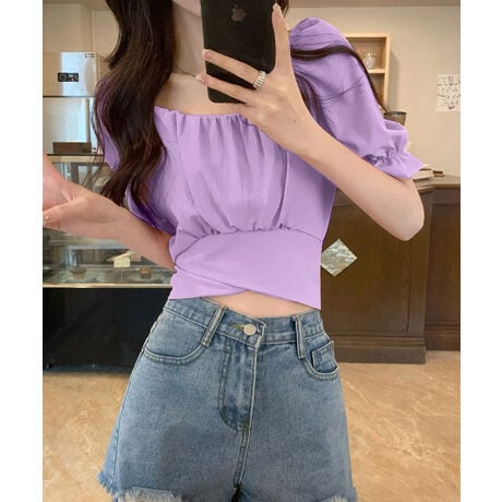 【2WAY】ボリュームスリーブバックリボンショート丈半袖トップス