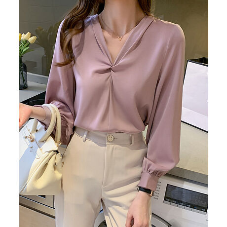 華やかな光沢感と立体ツイストで上品に決まる大人きれいめブラウス