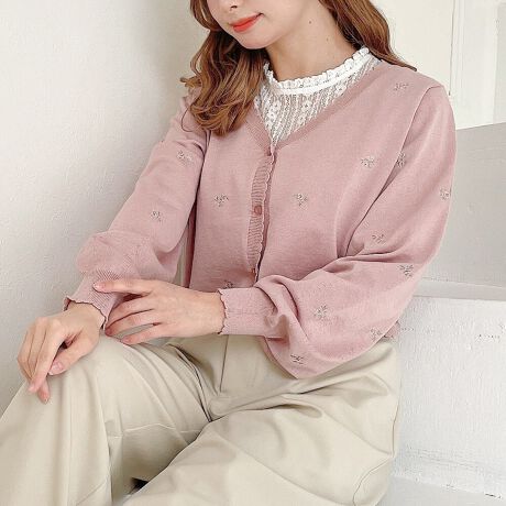 ブラウスやシャツ、ワンピースなど幅広いアイテムに羽織りやすいのがポイント◎
