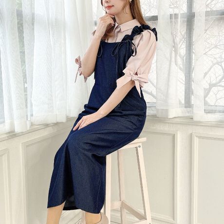 フリルとリボンの甘さのあるデザインと、すっきりとしたタイトなシルエットがバランスの良い一品◎