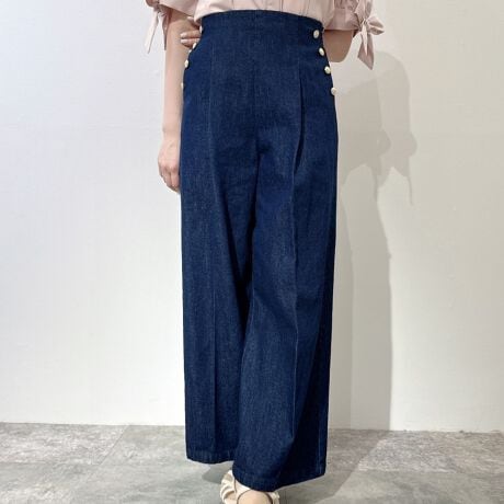 【サイズ展開】ダブル釦マリンデニムパンツ 洗える