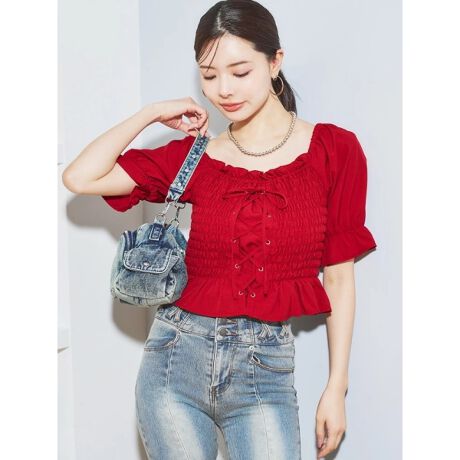 シャーリングスピンドルリボントップス