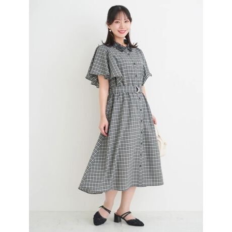 ・モノトーンのチェック柄で大人っぽくシックな印象に仕上げたワンピース。