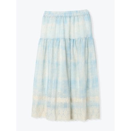 [型番:26550737562]やわらかなガーゼ素材にグラデーションが映えるロングスカート。裾のレース切り替えが軽やかな表情を添え、動くたびにやさしい揺れ感を演出します。ゆるめのブラウスを合わせてリラックス感を出したり、サンダルで軽さをプラスしたスタイルもおすすめです。