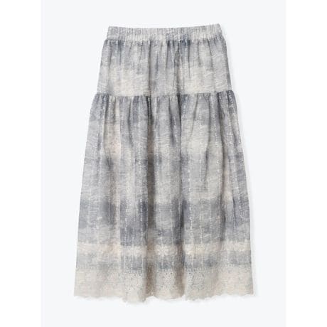 [型番:26550737562]やわらかなガーゼ素材にグラデーションが映えるロングスカート。裾のレース切り替えが軽やかな表情を添え、動くたびにやさしい揺れ感を演出します。ゆるめのブラウスを合わせてリラックス感を出したり、サンダルで軽さをプラスしたスタイルもおすすめです。