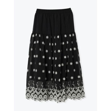 [型番:26550737512]繊細な花モチーフの刺しゅうをあしらった軽やかなロングスカート。ウエストは総ゴム仕様で、ストレスフリーな穿き心地も魅力です。オーバーサイズのシャツを羽織り、足元はフラットサンダルで抜け感を出すスタイルもおすすめです。モデル(アイボリー着用)身長:160cmMサイズ着用