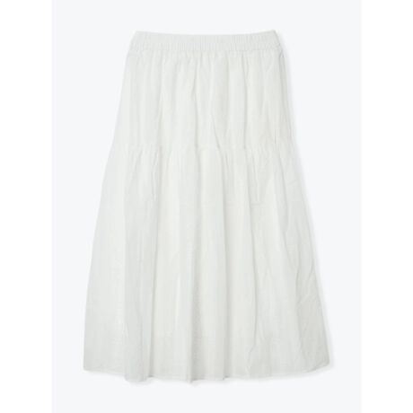 やわらかな風合いの生地に繊細なエンブロイダリーレースをあしらったロングスカート。