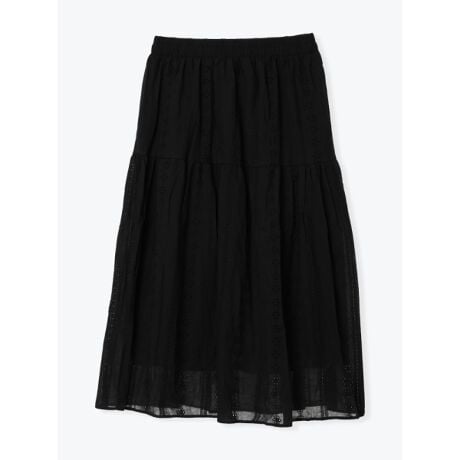 [型番:26550738974]やわらかな風合いの生地に繊細なエンブロイダリーレースをあしらったロングスカート。ふんわりと広がるシルエットと軽やかな透け感が、やさしい印象に仕上げてくれます。シャツを軽く羽織り、足元はフラットシューズで抜け感を出したスタイルもおすすめの一枚です。