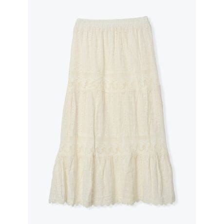 ティアードレース刺繍ロングスカート