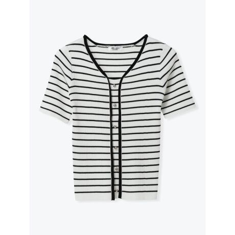配色ライン半袖ニットカーディガン