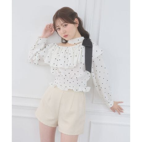 ドット×リボンにときめく♪旬顔ワンショルブラウス