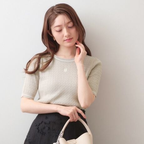 ・ケーブル編み×バイカラーの組み合わせで、上品かつトレンドライクな印象に。