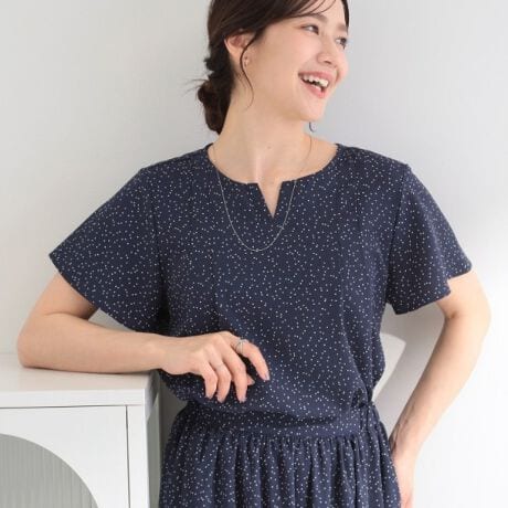 ドット柄のオフホワイト(603)とネイビー(694)のカラーは同素材のスカートをお作りしており、