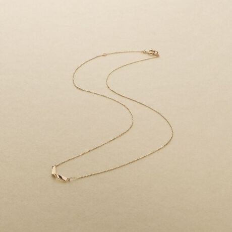 折り重なるようなフォールドデザインが印象的な、ミニマルモダンなネックレス。