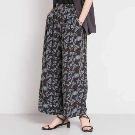 線描きの花柄を配したイージーパンツ。